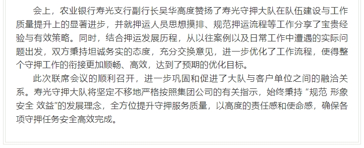 壽光守押大隊(duì)與農(nóng)業(yè)銀行壽光支行召開2025年第一季度工作聯(lián)席會